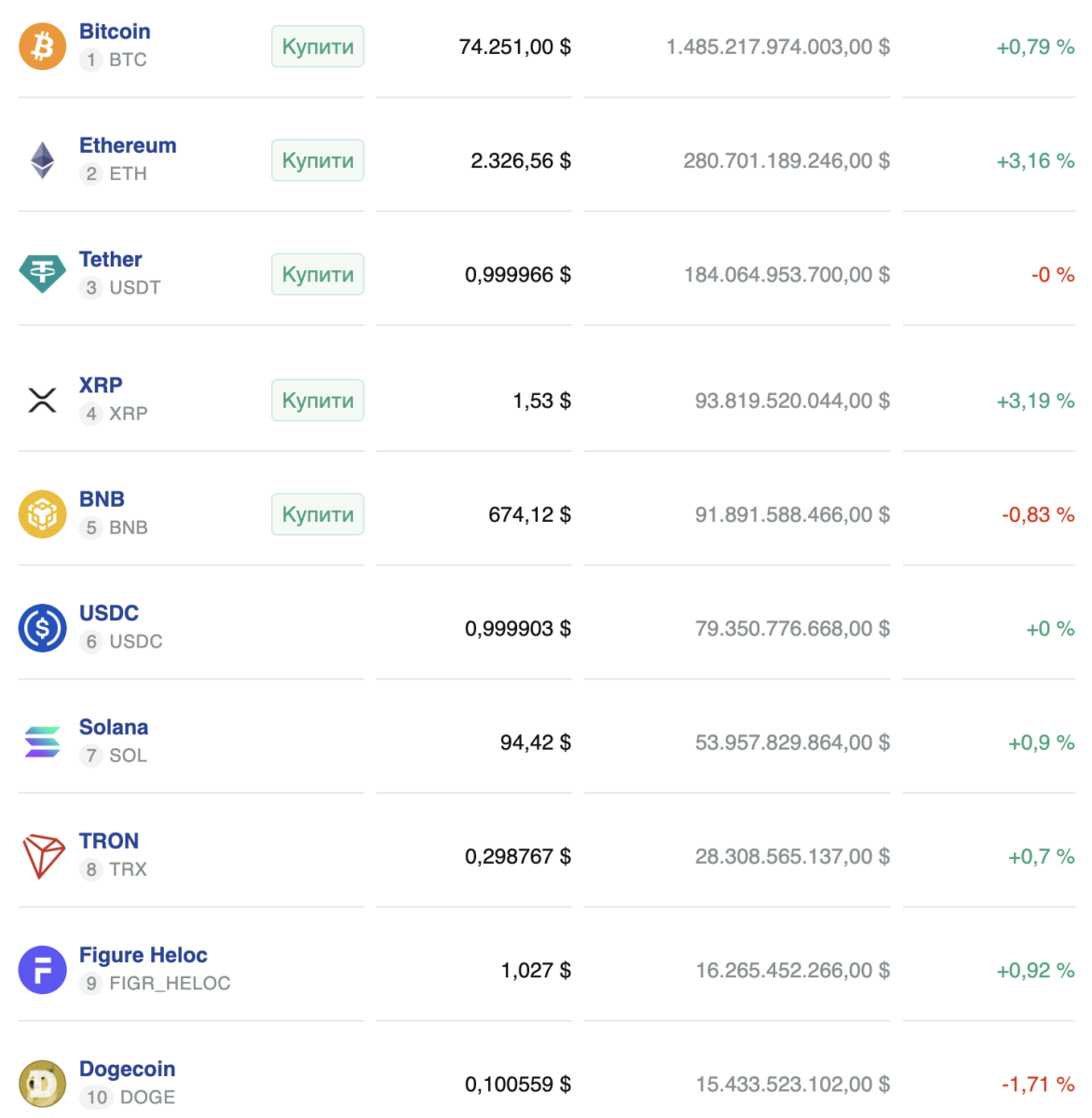К моменту написания новости цена биткоина составляет $74 251. За сутки актив вырос на 0,79%.