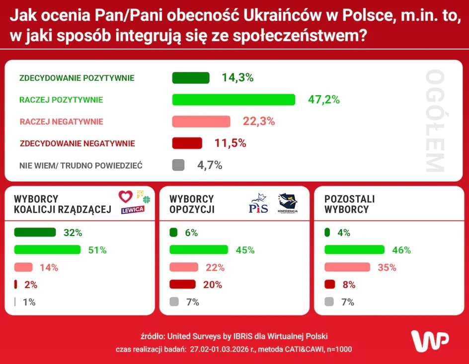 Опрос United Surveys для Wirtualna Polska проводился с 27 февраля по 1 марта 2026 года.