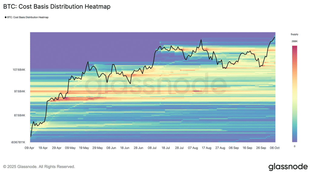 Glassnode указывает явное зона поддержки около $117 000. Именно на этом уровне было куплено примерно 190 000 BTC. Если цена упадет, многие инвесторы могут увидеть в этом возможность снова купить, что теоретически ограничивает масштаб потенциальной коррекции.