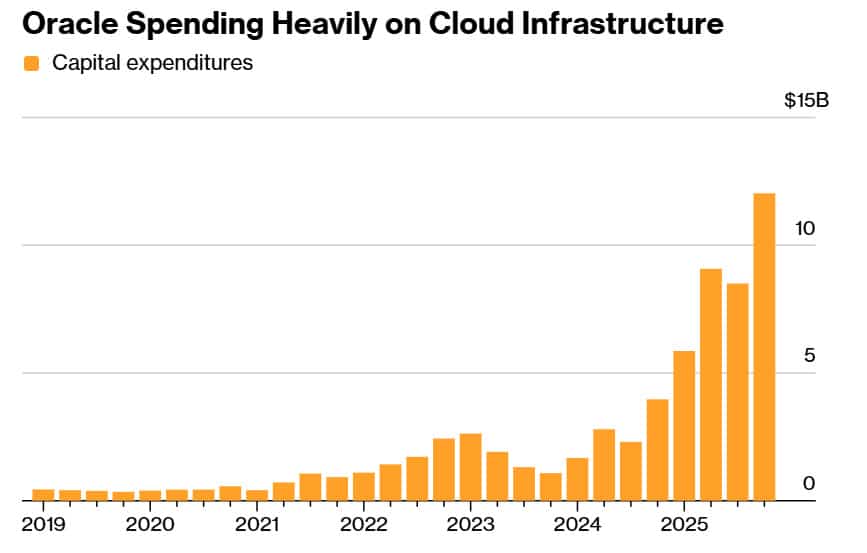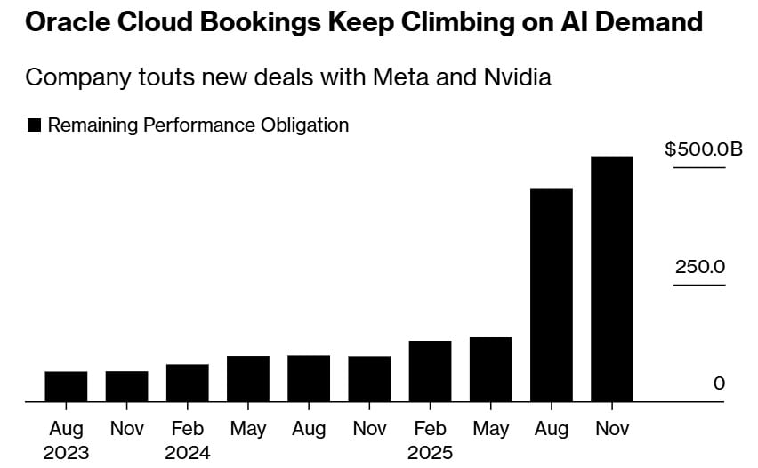 Инвестиционные расходы вызывают больше всего эмоций. Хотя Oracle и превзошла ожидания по чистой прибыли, она недополучила ожидаемую выручку, сообщив менее 16,1 млрд долларов США против прогноза в 16,2 млрд долларов США… Кроме того, компания потратила за квартал 12 млрд долларов США на центры обработки данных и оборудование, что явно превышает сумму в 8,5 млрд долларов США в предыдущем квартале. Ожидания аналитиков были еще ниже, поскольку рынок ожидал $8,25 млрд. Такой скачок показывает масштаб амбиций компании, но также показывает, насколько дорого обходится создание инфраструктуры искусственного интеллекта темпами, обещанными инвесторам.