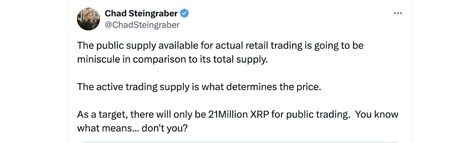 Аналитики, такие как Чад Стейнграбер, разделяют опасения, что, если больше XRP будет заблокировано в DeFi и институциональных резервах, общедоступное количество может упасть до 21 миллиона XRP. Это примерно столько же, сколько общее количество биткойнов.