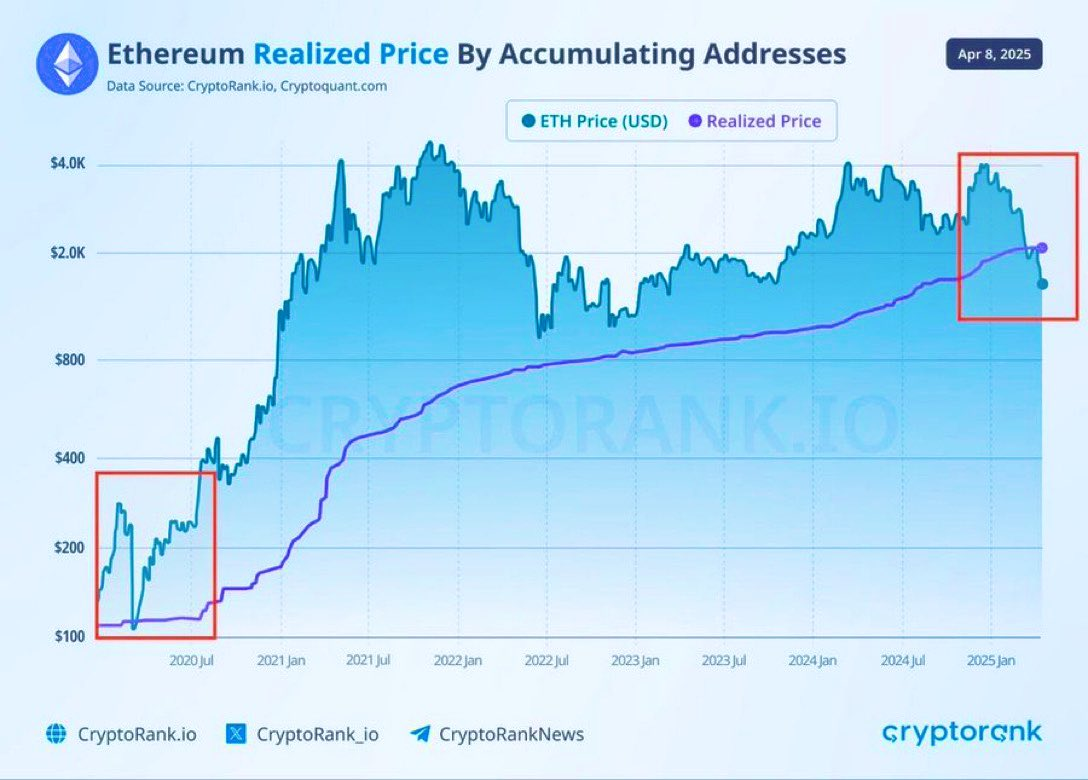 Согласно данным CryptoraAnk.io и Cryptoquant, чтобы подтвердить отношение быка, Ethereum недавно упал ниже цены завершенной. Завершенная цена, ключевой индикатор в цепочке, отражает среднюю стоимость покупки ETH в циркуляции. Исторически, когда рыночная цена упала ниже этой линии, это часто сигнализировало о недооценке и сильном накоплении, аналогично моделям, наблюдаемым в начале 2020 и 2025 годов.