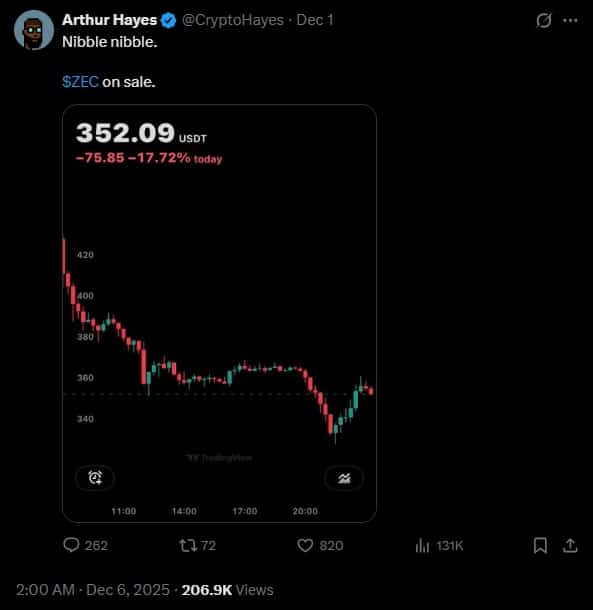 Несмотря на худшие результаты, аналитик не отказывается от своего нынешнего повествования. В одном из своих недавних постов на X он предположил, что мы наблюдаем распродажу на Zcash, которая может стать хорошей возможностью для покупки.