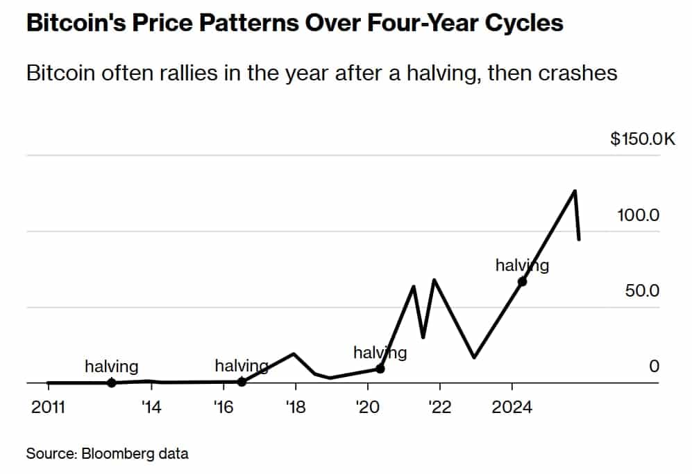 Эрик Балчунас из Bloomberg Intelligence, за которым последовали миллионы трейдеров, отметил, что именно страх повторения четырехлетнего цикла может… привести в движение этот цикл. Так что это похоже на самоисполняющееся пророчество. Поскольку рынок ожидает снижения, он начинает играть против снижения.
