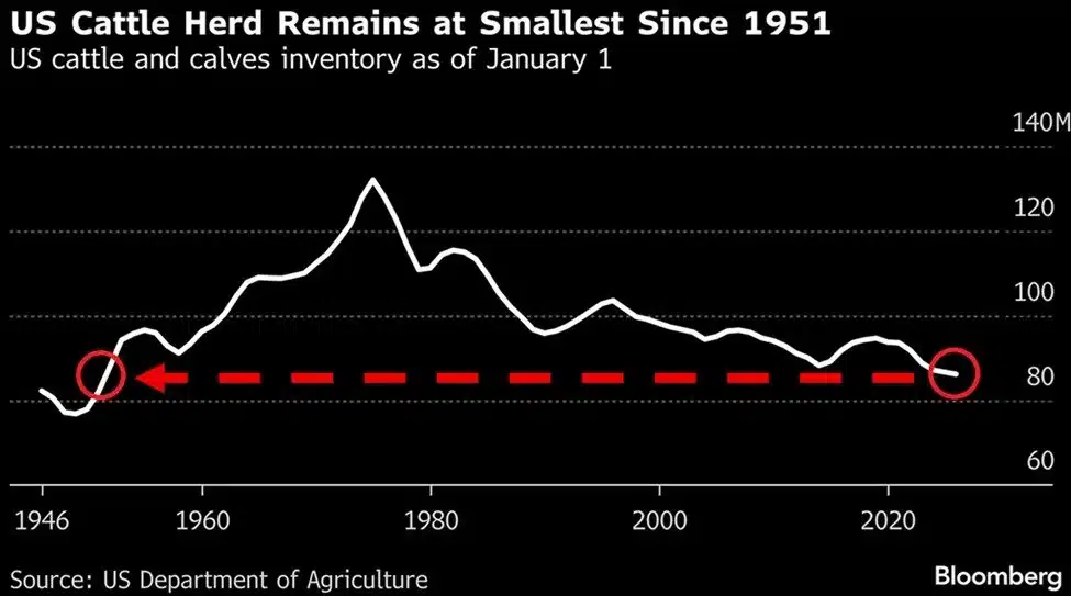 Поголовье крупного рогатого скота в США сократилось до самого низкого уровня с начала 1950-х годов. Это результат многолетней засухи, роста цен на корма, дорогой энергии и высоких процентных ставок. Они существенно увеличили затраты на финансирование племенной работы.