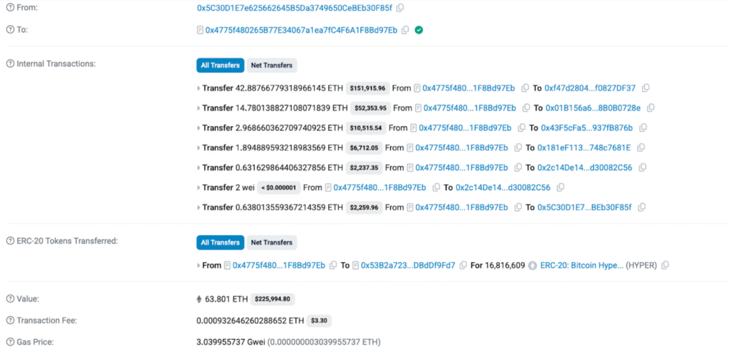 Источник: данные предпродажной подготовки HYPER и Etherscan.