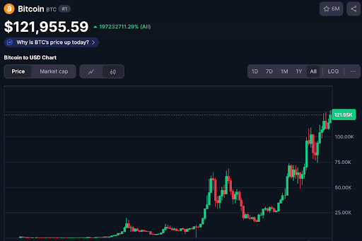 Биткойн (БТД) официально имеет новую цель А новый небывалый рекорд выше $126 000подтверждает свое самое сильное октябрьское ралли за пять лет. Увеличение происходит потому, что многие люди бегут от слабеющего доллара и ищут стабильности в дефицитных активах. Биткойн теперь доступен для 121 959 долларов СШАв. Он поднялся 9% за неделю. Рыночная капитализация превышена 2,4 триллиона долларов. Он укрепил свои позиции в качестве доминирующей глобальной альтернативы золоту.
