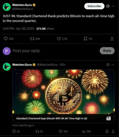 Начало апреля было неудачным для рынка криптовалют. В результате аварии предполагалось, что еще один слабый квартал ждал цифровых валют. Между тем, с прошлой недели криптовалюты компенсировали убытки. Биткойн много восстановился, который боролся с сопротивлением 95 000 в течение нескольких дней. Большая группа экспертов думает, что мы просто наблюдаем за началом следующего бычьего цикла. Однако не все так уверены. Что говорит стандарт Хартера? Банковский гигант только что представил обновленный прогноз для BTC.