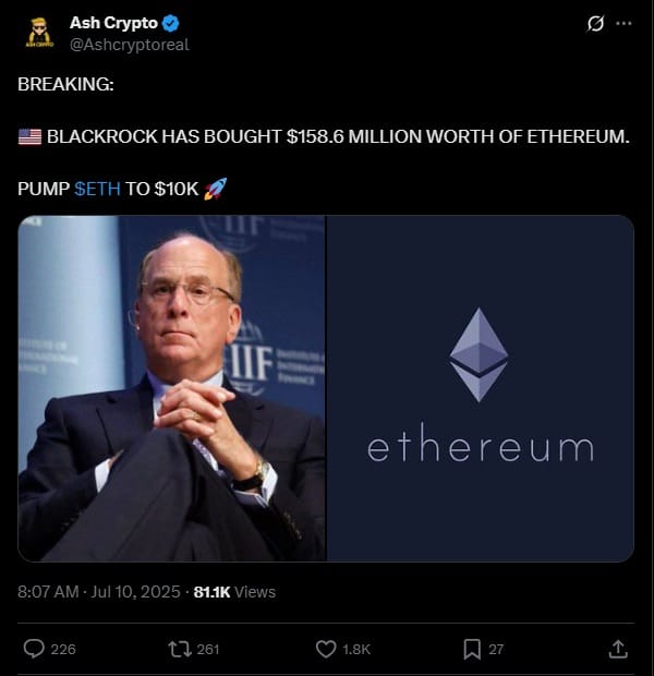 Стратегия BlackRock, описанная выше, которая недавно предпочитала Ethereum, решительно привлекла внимание рыночных наблюдателей. Многие эксперты считают, что возвращение к этому альткойну сигнализирует о готовности проекта получить новый ATH.
