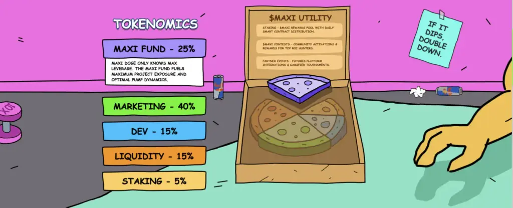 Для MAXI характерна стратегическая токенномика: 40% приходится на маркетинг, а 25% на листинг, и эксперты прогнозируют, что в будущем она вырастет в 12–16 раз.