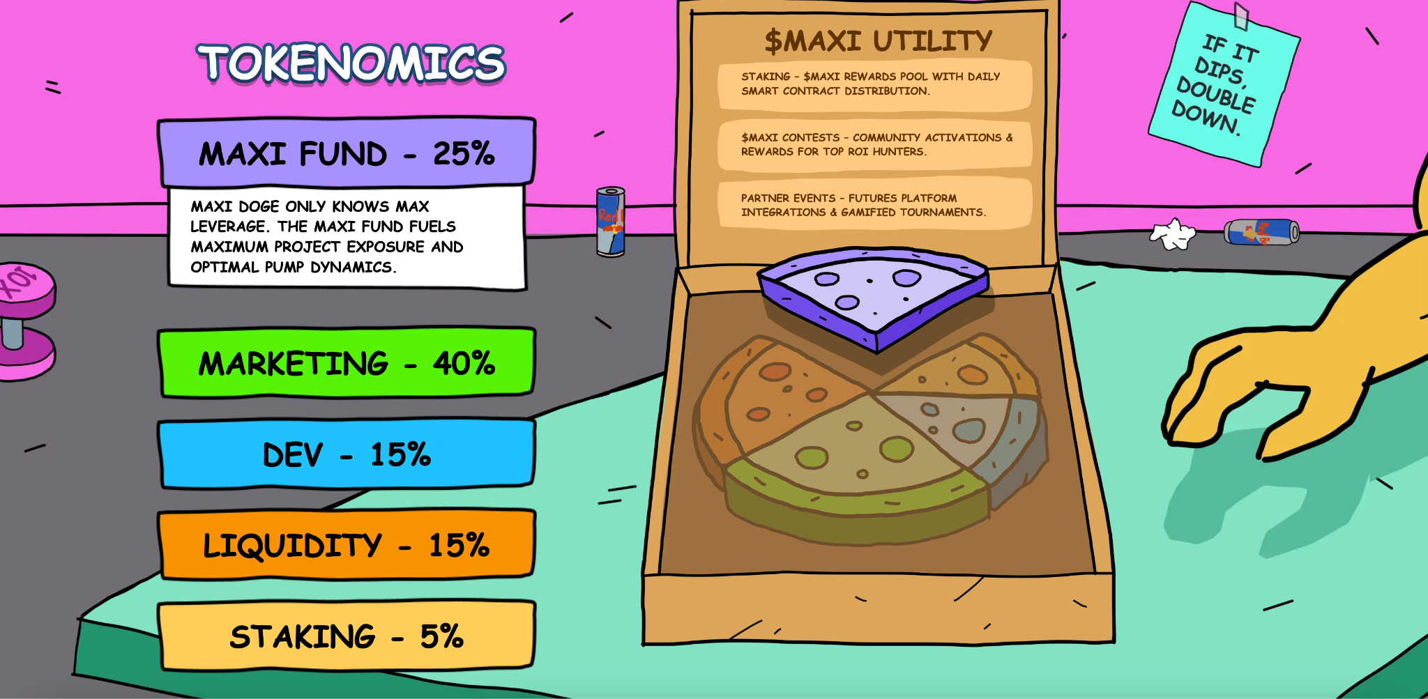 MAXI — это монета-мем, вдохновленная культурой Дегена — концепцией «слишком мускулистого торговца шиба-ину», который торгует с кредитным плечом 1000x.