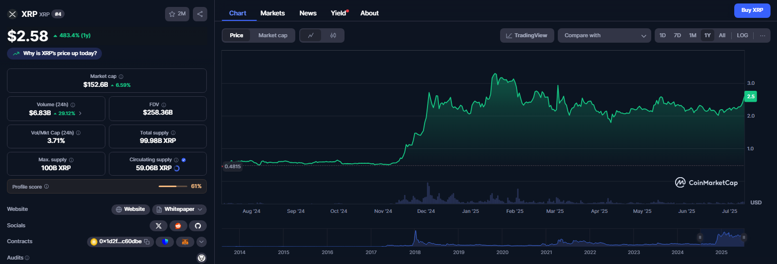 XRP был в центре внимания после того, как аналитик Edaardo Farina предположил, что он может обогнать Ethereum. И даже бросить вызов биткойну и займи первое место. Хотя это может показаться смелым, цена XRP длится на стабильном уровне в 2025 году. Некоторые считают, что Ripple XRP может войти в новую территорию, если сохраняется динамика.