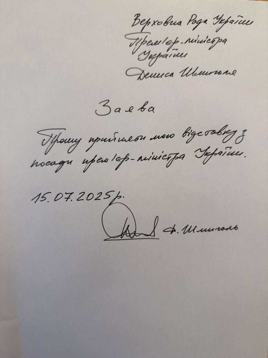 Премьер -министр Денис Шмигал подал в отставку. Он опубликовал соответствующее заявление в своем телеграмме.
