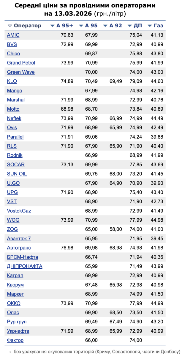 В пятницу, 13 марта, на украинских заправках зафиксирован очередной рост стоимости горючего. Ценовая стабильность сохраняется только на бензин, в то время как дизель и автогаз продолжают дорожать. Об этом сообщает «Минфин» со ссылкой на данные Консалтинговой группы «А-95».