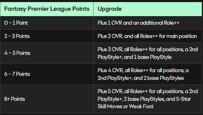 Если вы не знакомы с Фэнтези Премьер Лигой, кратко объясним правила начисления очков игрокам. Игроки получают очки за результат матча, забитые голы или результативные передачи, но теряют их, например, за поражения, пропущенные голы (защитники и вратари) или за желтые и красные карточки. И на основании этих баллов будут начисляться улучшения для карт Fantasy FC.