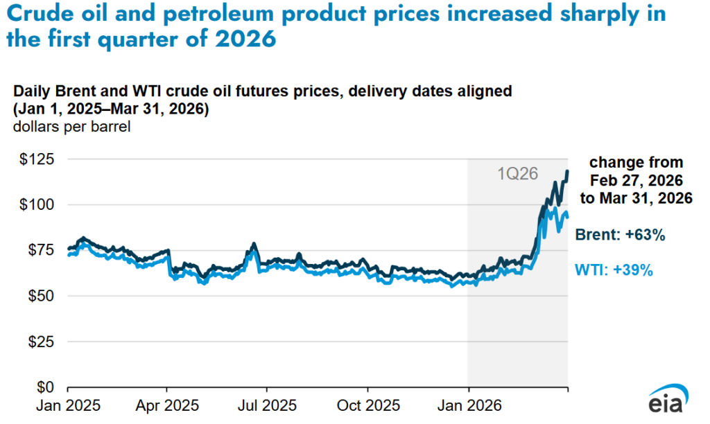 Первый квартал 2026 года оказался прорывным для нефтяного рынка. Цены на Brent начали год около 61 доллара за баррель и в конце марта достигли 118 долларов. В реальном выражении это был самый сильный квартальный рост с 1988 года.