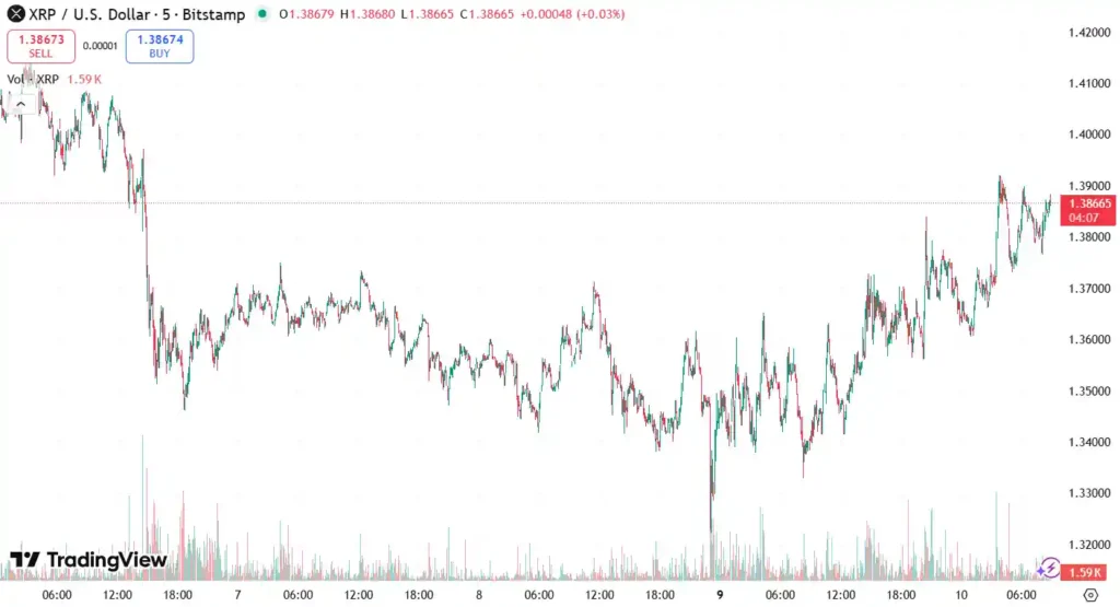 XRP, с другой стороны, был на удивление стабильным, двигаясь в узком диапазоне между $1,30 и $1,45, несмотря на положительные новости относительно ETF и юридической ясности после урегулирования Ripple.