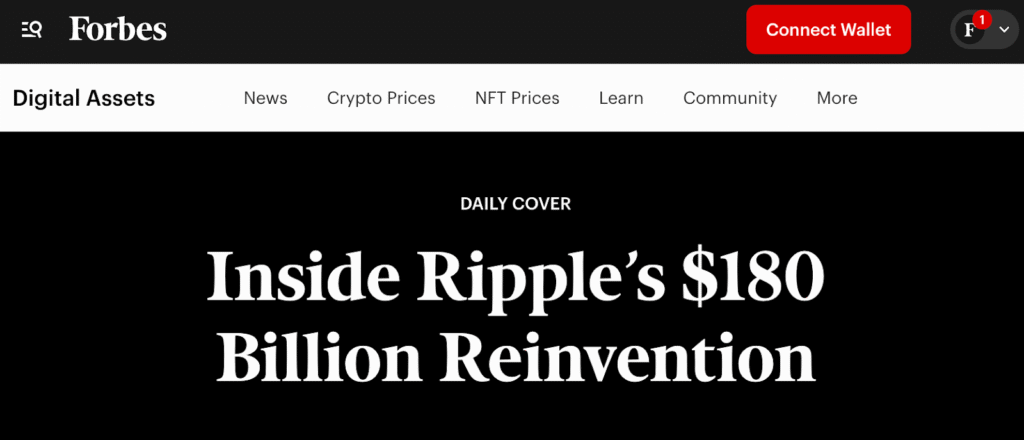Forbes теперь изображает Ripple как дисциплинированный, институционально ориентированный конгломерат. Такие аналитики, как Джо Наггар, считают, что его сильное лидерство и стратегия капитала привели к изменению восприятия рынка.