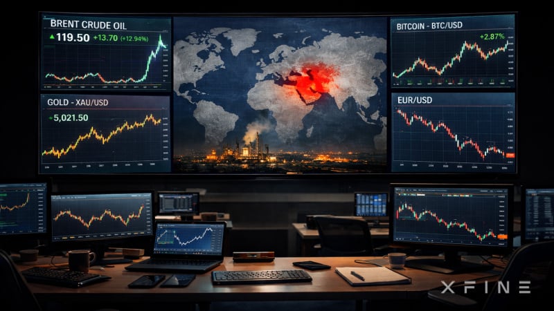 В XFINE рассматривают следующие базовые сценарии: EUR/USD — нейтрально медвежий, пока цена остается ниже 1.1510-1.1530. BTC/USD – нейтральный, с сопротивлением 74,000. Brent — волатильный бычий сценарий, пока цена выше 95.20-95.60. XAU/USD — умеренно бычий, пока котировки остаются выше 4,985-5,000.
