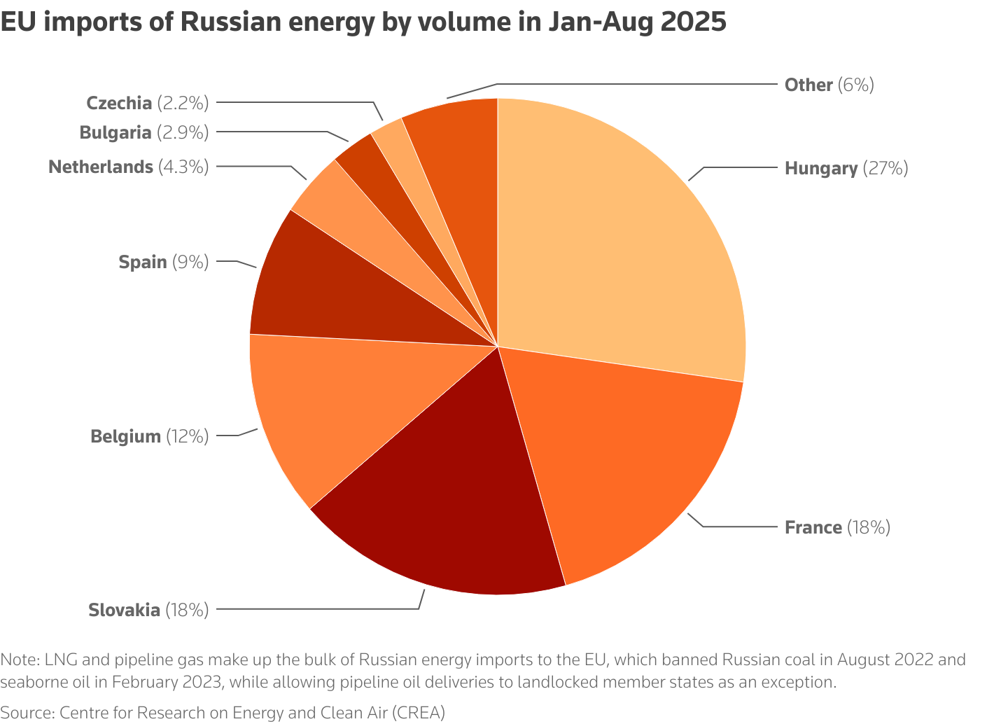 Несмотря на общее снижение зависимости РФ от энергетики на 90% к 2022 году, за первые восемь месяцев 2025 года страны ЕС выплатили Москве более 11 млрд евро.