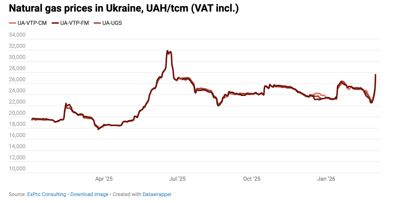 Цены на газ с начала недели выросли на 20%, достигнув 27 800 грн/тыс. куб. м. с учетом НДС. Об этом пишет ExPro Consulting.
