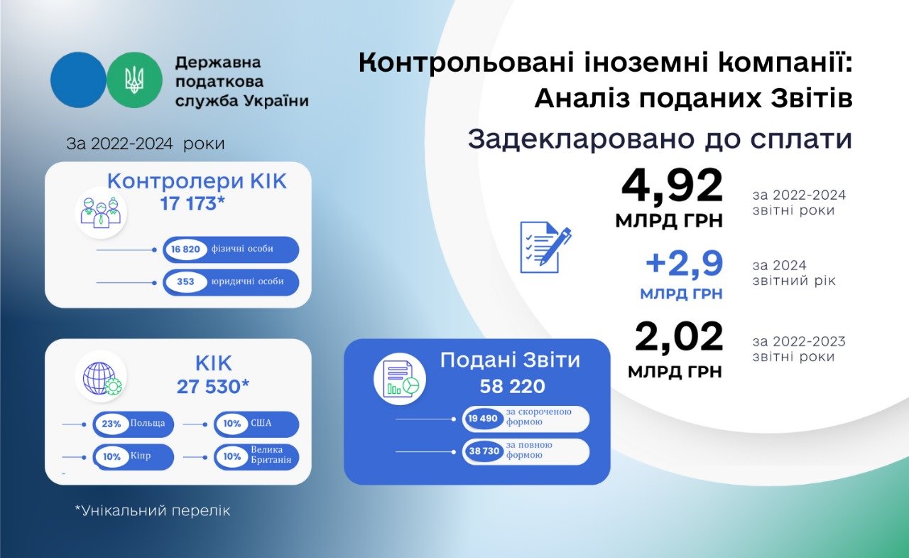 Сумма налоговых обязательств, определенных контроллерами CIK за 2022–2024 годы — 4,9 млрд. UAH, в том числе за 2024 год — UAH 2,9 млрд.