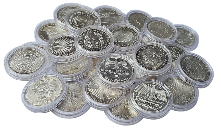 - Стандартные монеты: При цене чистого серебра 3,03 евро за грамм материальная стоимость классической монеты (проба 925/1000) составляет около 50,50 евро. При этом ее номинал — всего 35 евро.