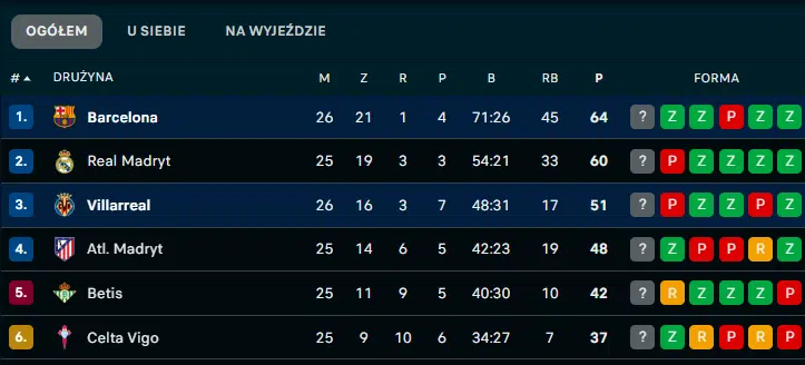 Благодаря победе над «Вильярреалом» «Барселона» сохранила лидирующие позиции. На данный момент у подопечных Ханси Флика 64 очка, что на четыре больше, чем у «Реала», у которого на одну игру меньше. Даже если члены королевской семьи победят «Хетафе», они все равно будут отставать от «Барселоны» на одно очко.