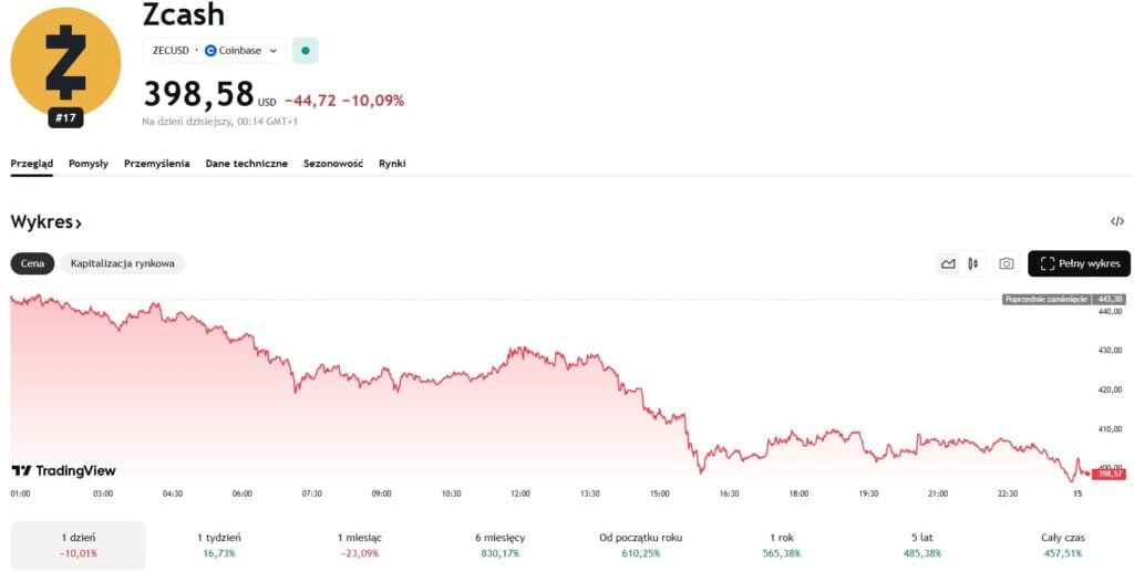 Криптовалютный рынок переживает спад с начала октября. Биткойн снова испытывает трудности с поддержанием отметки в 90 000. долларов. В критический момент он терял около 40 тысяч. долларов от своего пика. Однако даже во время кризиса всегда есть темная лошадка, которая оказывается устойчивой к падению и растет, несмотря на неблагоприятную рыночную конъюнктуру. Долгое время Zcash был таким приятным сюрпризом. Однако в последние дни у ZEC возникли проблемы с большими колебаниями обменного курса.. За последние часы альткоин упал ниже 400 долларов и уступил лидерские позиции в секторе токенов конфиденциальности Monero.