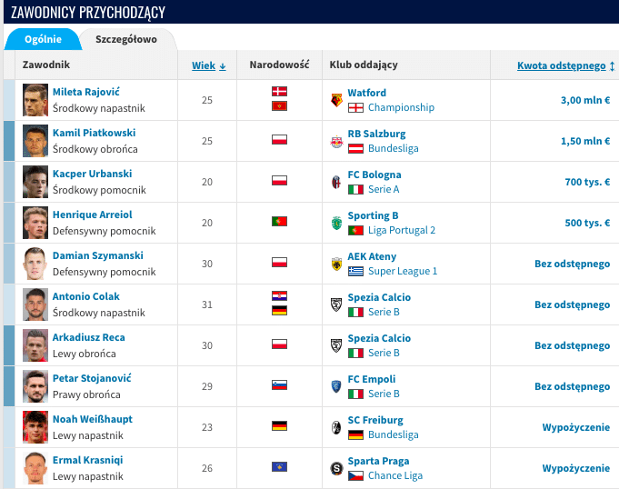 Камиль Пионтковски, выступавший в прошлом сезоне за «РБ Зальцбург» в Лиге чемпионов, прославился лишь автоголом и красной карточкой в матче против «Заглембе-Любина». Дамиан Шимански? Двенадцать игр, один гол и конец раунда на скамейке запасных.