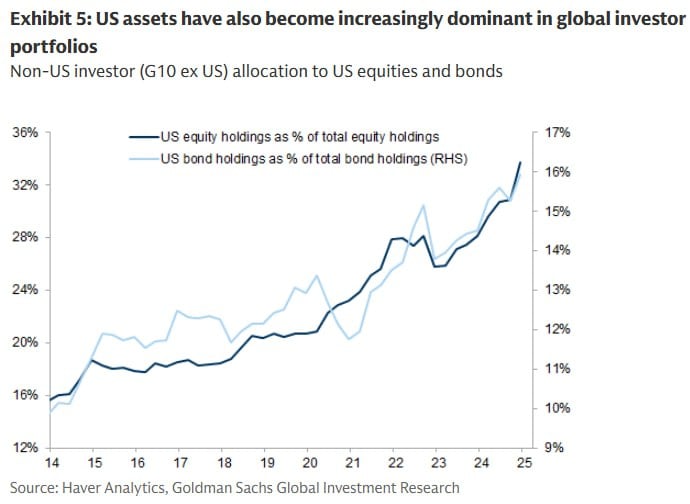 Goldman Sachs подчеркивает, что такие показатели, как World Portfolio, на самом деле формируют поведение инвесторов, поскольку они отражают «среднемировой» подход к распределению активов.