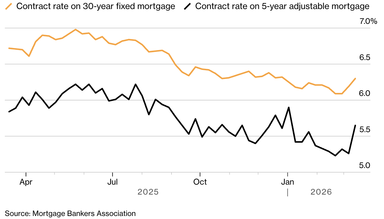Наиболее ощутимо взлетели ставки на пятилетние ипотечные кредиты с регулируемой ставкой (ARM) — на прошлой неделе они подскочили почти на 40 базисных пунктов, что является рекордным ростом с начала 2024 года.