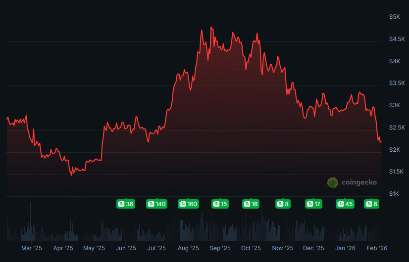 ЧатGPT: В феврале 2026 года Ethereum вступает в режим «высокой бета» — он сильно реагирует на макроэкономические настроения и движения биткойнов, в то же время становясь все более и более зависимым от институциональных потоков через спотовые ETF на ETH.