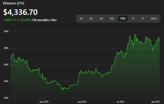Эфир стартовал «Uptober» нервно — после нового рекорда августа (около $4,95 тыс.) цена сегодня колеблется в районе 4,3-4,5 тыс. USD и шатается вместе со всем рынком. Ниже представлено понятное сочетание технического и фундаментального анализа, а также сценарная оценка на 31 октября 2025 года.