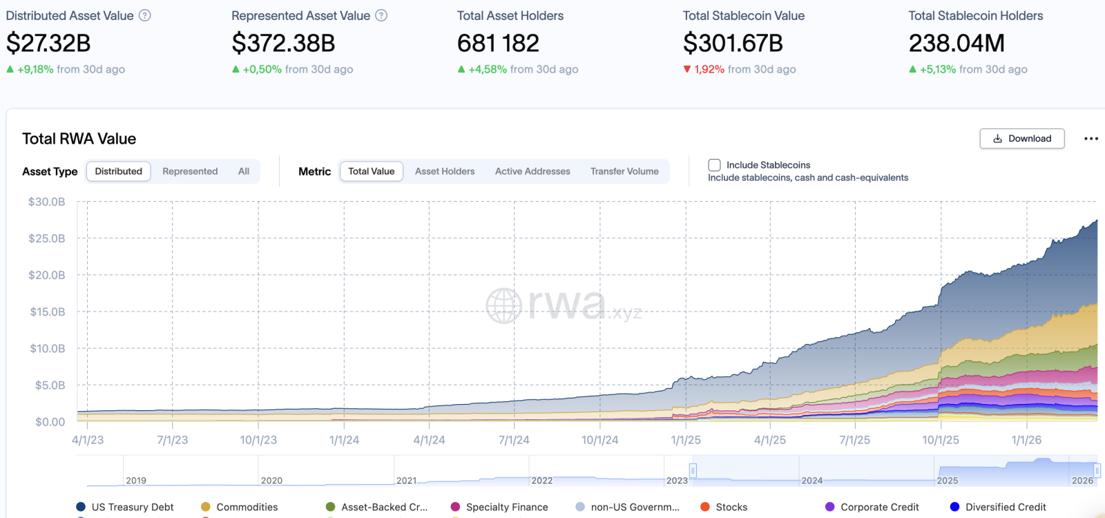 На момент написания новости совокупная капитализация сектора RWA уже достигла $27,32 млрд, и решение о Nasdaq может стать катализатором для дальнейшего стремительного роста.