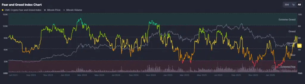 Настроения вокруг криптовалюты Биткойн (BTC) резко изменились за последние две недели. Индекс страха и жадности, который измеряет общие настроения рынка, вырос с диапазона 25-30 в середине апреля примерно до 50-60 пунктов — самого высокого значения за три месяца. Этот сдвиг в первую очередь обусловлен точными данными о потоках капитала.
