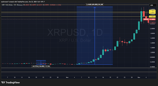 Ректор отметил, что в последнее время тенденция повторяется. В октябре этого года цена XRP упала почти на 50%, а затем выросла до текущей цены около $2,45.