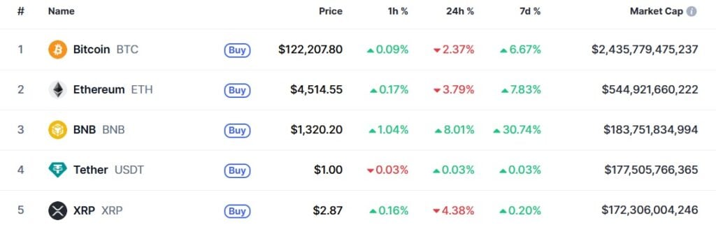 В свою очередь, во вторник Ripple неожиданно опустилась на пятую позицию в рейтинге крупнейших криптовалют по рыночной капитализации. В течение нескольких месяцев альткойн торговался на третьем месте после стейблкоина Tether. Однако БНБ, который уже несколько недель набирает обороты, обогнал оба проекта.