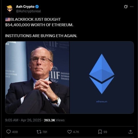 BlackRock покупает Ethereum за 54 миллиона долларов. Токен на волне эрекции