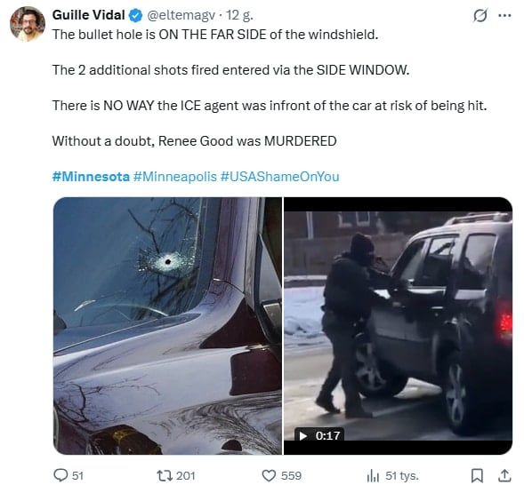 Жертвой оказалась 37-летняя гражданка США Рене Николь Гуд. Женщина была поэтессой и матерью троих детей. Рене воспитывала 6-летнего сына, отец которого, комик Тимоти Маклин, умер в 2023 году. Начальник полиции Миннеаполиса подтвердил, что против женщины не ведется иммиграционного разбирательства. 37-летняя женщина не была объектом федерального розыска и оказалась там случайно. Мать жертвы, Донна Гангер, описала свою дочь как невероятно сострадательного человека, который всю жизнь заботился о людях. Шокирующая запись с места происшествия показывает, как партнер Рене плачет и винит себя в смерти любимого человека.
