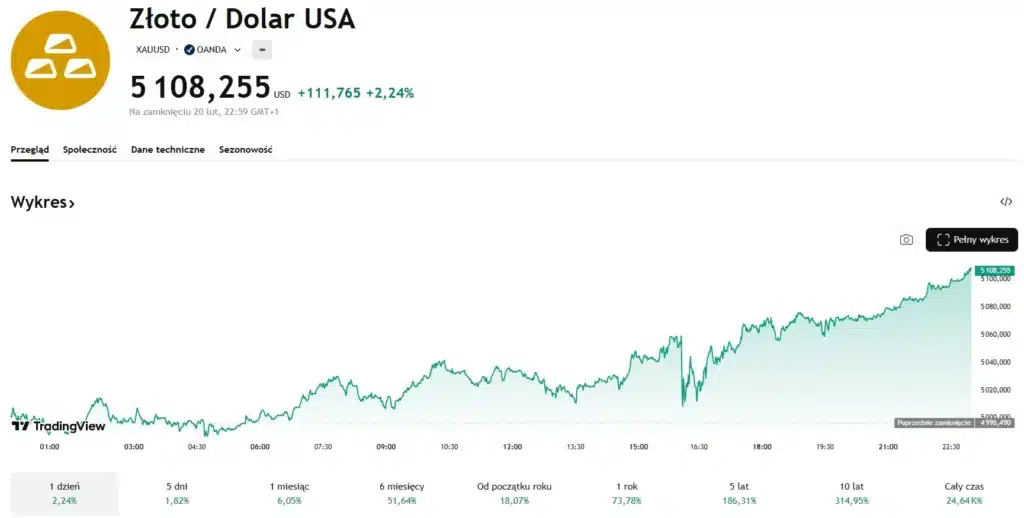 Второй вопрос, который может способствовать росту золота, — это тарифы. В пятницу Верховный суд постановил, что большинство тарифов, введенных Дональдом Трампом, были незаконными. Президент США не воспринял это хорошо и начал нападать на систему правосудия. Спустя несколько мгновений он объявил, что несмотря ни на что повысит пошлины на импорт в США с 10 до 15%. Дальнейшая путаница вокруг тарифов также означает большие шансы на повышение цены на золото.