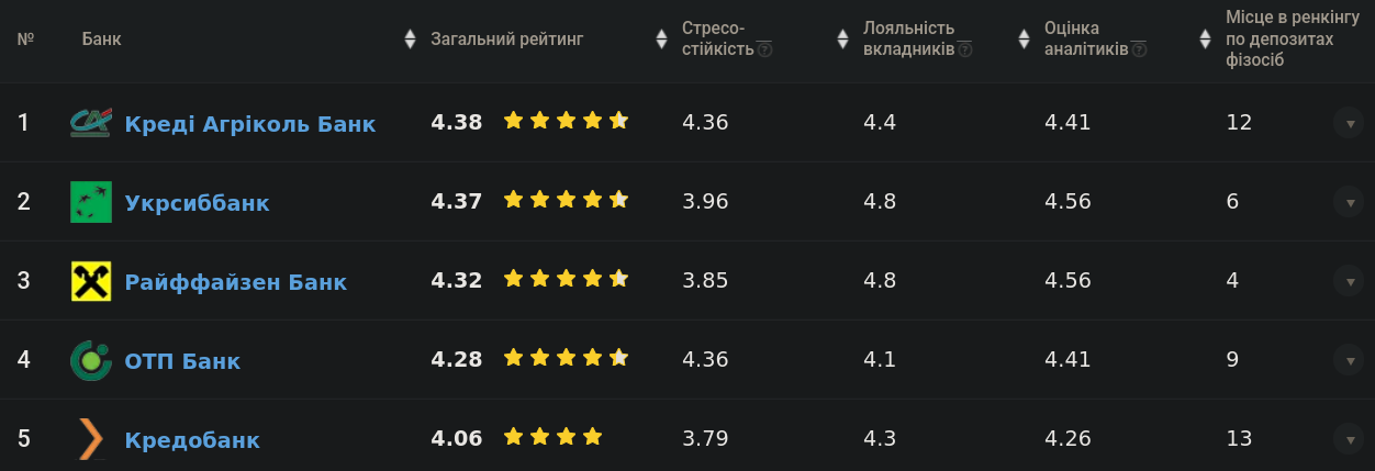 В первую пятерку самых стойких банков входят также ОТП Банк и Кредобанк.