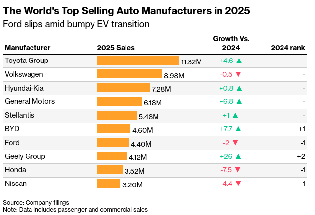 - BYD: Китайский производитель сообщил о продажах 4,6 млн автомобилей в 2025 году.