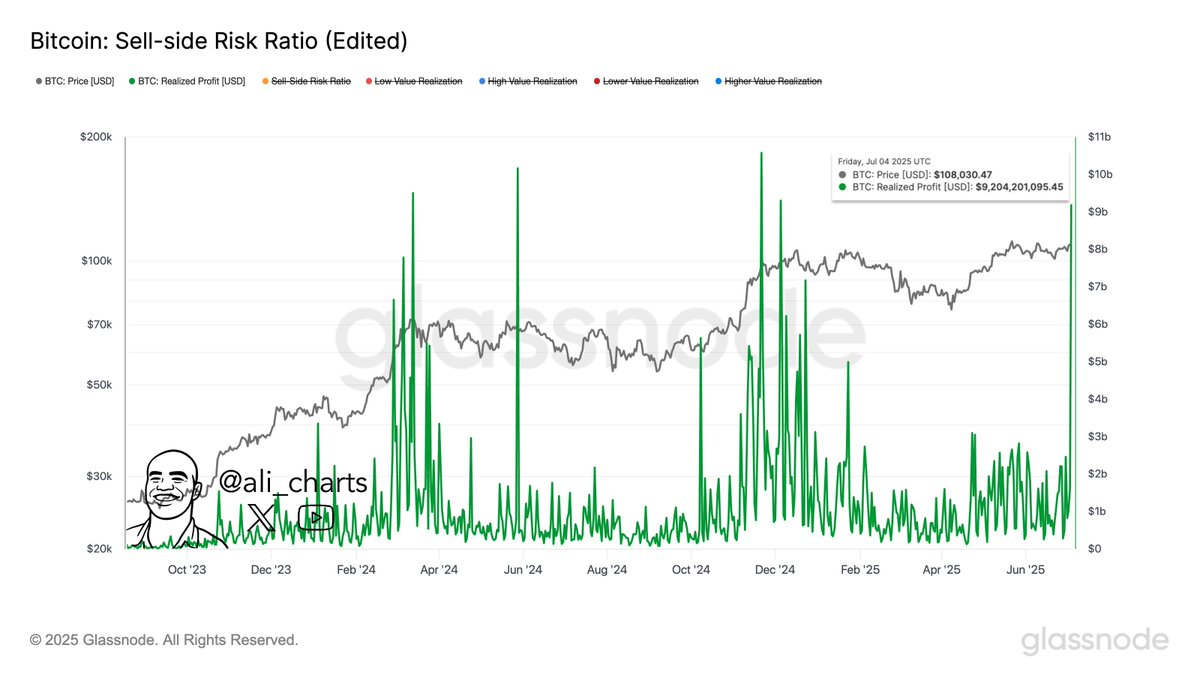 Однако ситуация может измениться в ближайшее время. Эксперт по рынку Али Мартинес поделился этой информацией в статье 6 июля. Пост на X сообщил, что владельцы продают свои биткойнские принадлежности. Таким образом, они получают более 9,2 миллиарда долларов в течение выходных.
