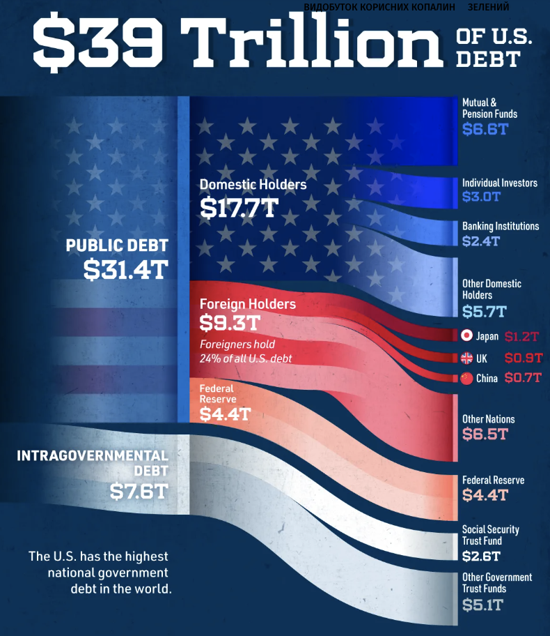 Из 39 триллионов долларов валового долга 31,4 триллиона долларов (81%) принадлежат отечественным и иностранным инвесторам.