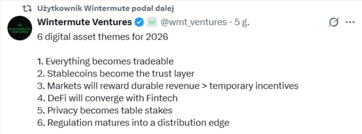 В докладе также показано, что самой большой угрозой стабильности рынка в 2026 году станет не регулирование, а растущий дефицит ликвидности. Аналитики Wintermute подчеркивают, что капитал перестал широко распространяться по рынку и теперь сконцентрирован почти исключительно в биткойнах и эфириуме. Эта ситуация делает выход на фондовую биржу более мелких предприятий гораздо более трудным, чем двенадцать месяцев назад.