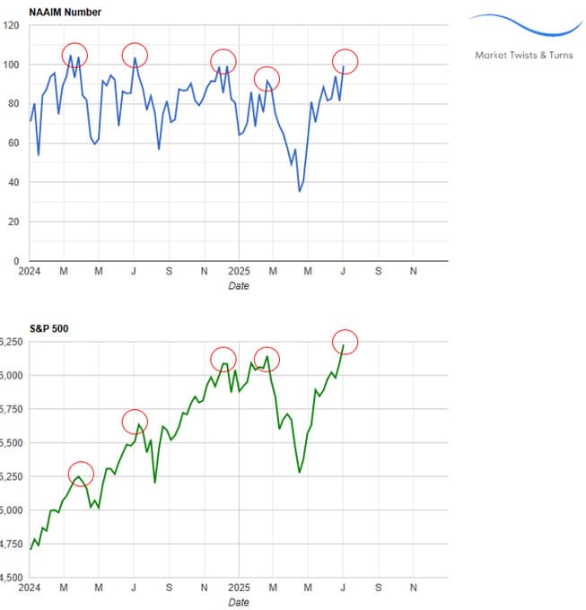 Проблема в том, что увеличение могло быть поглощено преждевременно, в то время как только одна вещь для Уолл -стрит … что вы не можете быть абсолютно уверены. Индикатор NAAIM, безусловно, является чем -то, что нужно искать. Особенно в контексте переоценки активов, перечисленных на фондовых биржах.