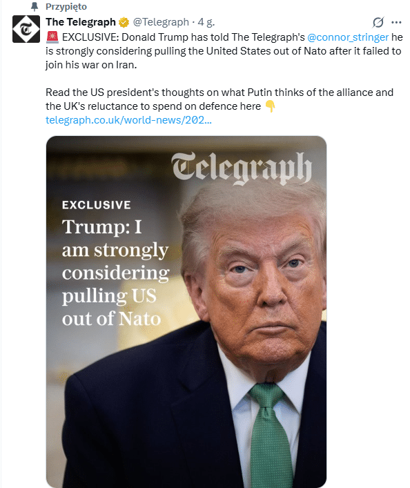 Американский президент в интервью британской газете «Телеграф» назвал альянс «бумажным тигром» и заявил, что выход из оборонного пакта теперь является вопросом, не подлежащим пересмотру. Трамп подчеркнул, что никогда не находился под влиянием НАТО и давно подвергает сомнению авторитет этой организации, что, по его мнению, прекрасно понимает и Владимир Путин.