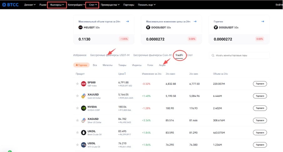 Помимо криптовалют, BTCC предлагает токенизированные деривативы на акции и сырьевые товары. Среди популярных рынков – TSLAUSDT (Tesla), AAPLUSDT (Apple) и GOLDUSDT (золото), что открывает инвесторам в криптовалюту возможности для диверсификации портфеля за счет классических классов активов.