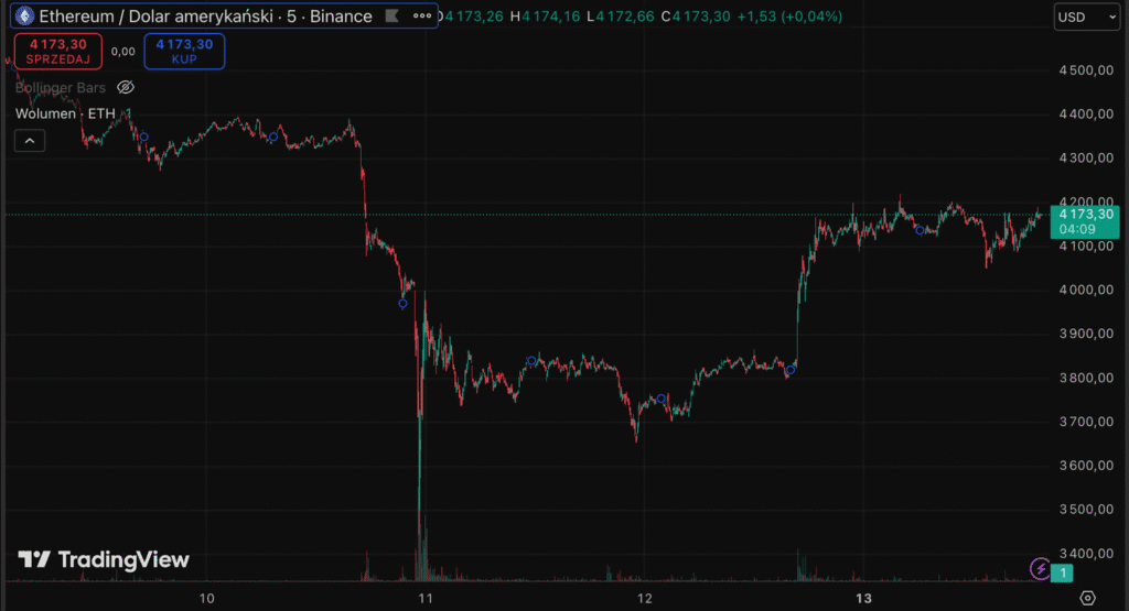 После падения ниже $3500 Эфириум ($ETH) быстро восстановил свою стоимостьснова преодолев психологический уровень в $4000. 13 октября цена $ETH оставалась стабильной на уровне $4,17 000, но днем позже — во вторник, 14 октября — цена снова упала ниже порога в $4 000. Это снижение, вероятно, является результатом возросшего страха на рынке и деятельности загадочного китового трейдера, который во время пятничного краха якобы заработал до $192 миллионов на продаже своих позиций.